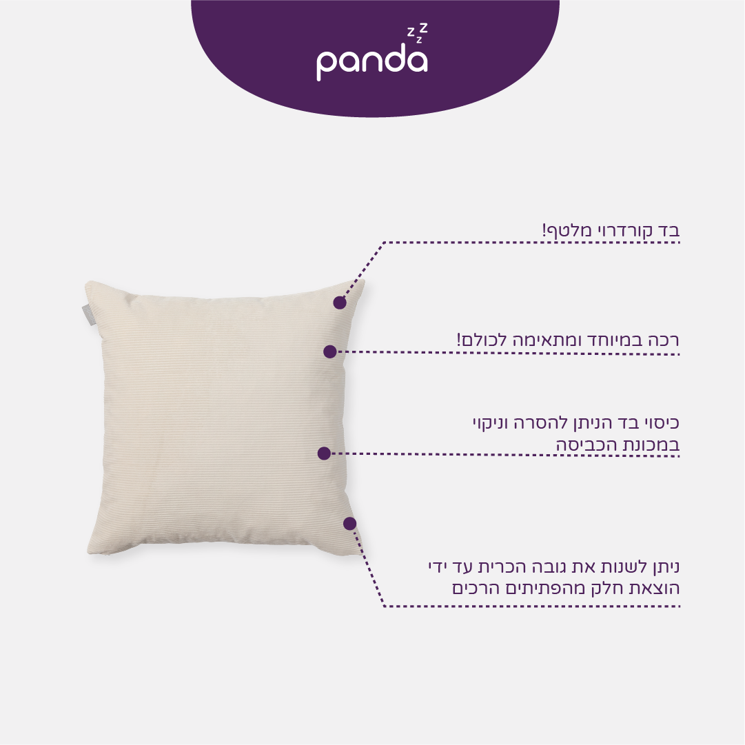 כריות נוי של פנדה מגיעות עם פיצ׳ר מיוחד וחכם שמאפשר לכם להתאים את גובה ורכות הכרית בדיוק להעדפה שלכם. פשוט מוציאים בקלות חלק מהפתיתי הרכים בהן הכריות ממולאות וכך משנים את הגובה. את מילוי הפתיתים ניתן לשמור בשקית סגורה ולהחזיר אותו לכרית במקרה הצורך.