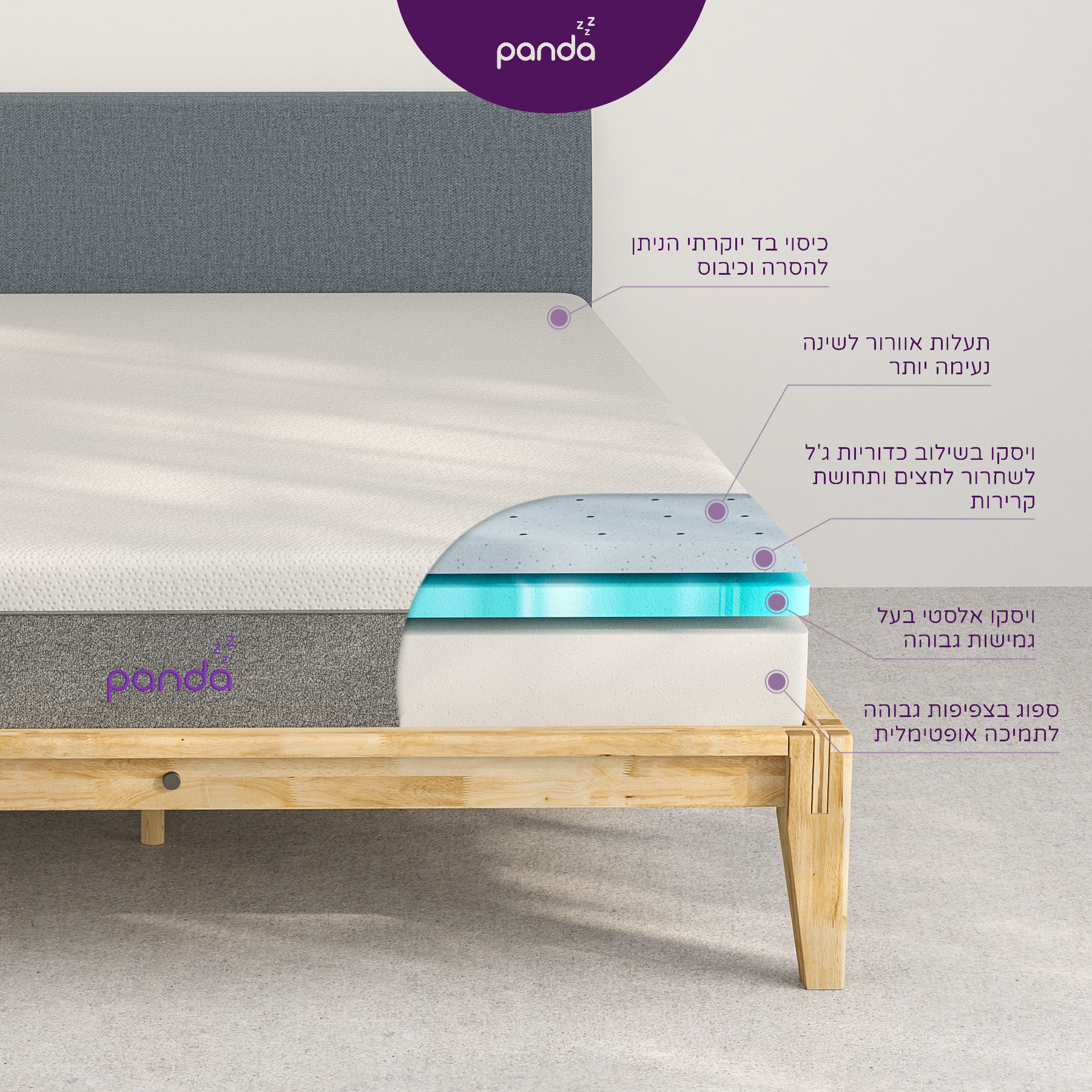 1. שכבת ויסקו (ספוג זיכרון) בשילוב כדוריות ג'ל לשחרור לחצים בנקודות העומס ותחושת קירור נעימה ואיזון טמפרטורת הגוף.